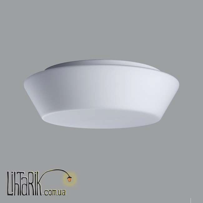 Светильник на потолок бочковидного вида, конусообразной формы, круглого (шарообразного) вида впишется в любую дизайнерскую среду. Подходит для вашей ванной комнаты. Модель представлена в белых тонах. Светильник изготовлен из металла, стекла высокого качества
