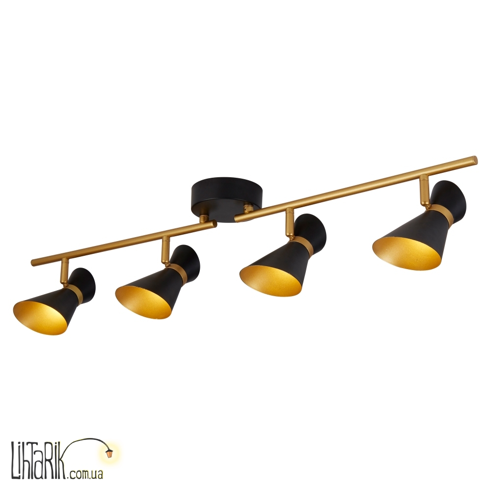 Направленный светильник Модель представлена в золотых тонах.