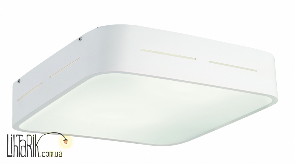 Светильник на потолок с четкими ровными углами впишется в любую дизайнерскую среду. Модель представлена в белых тонах.