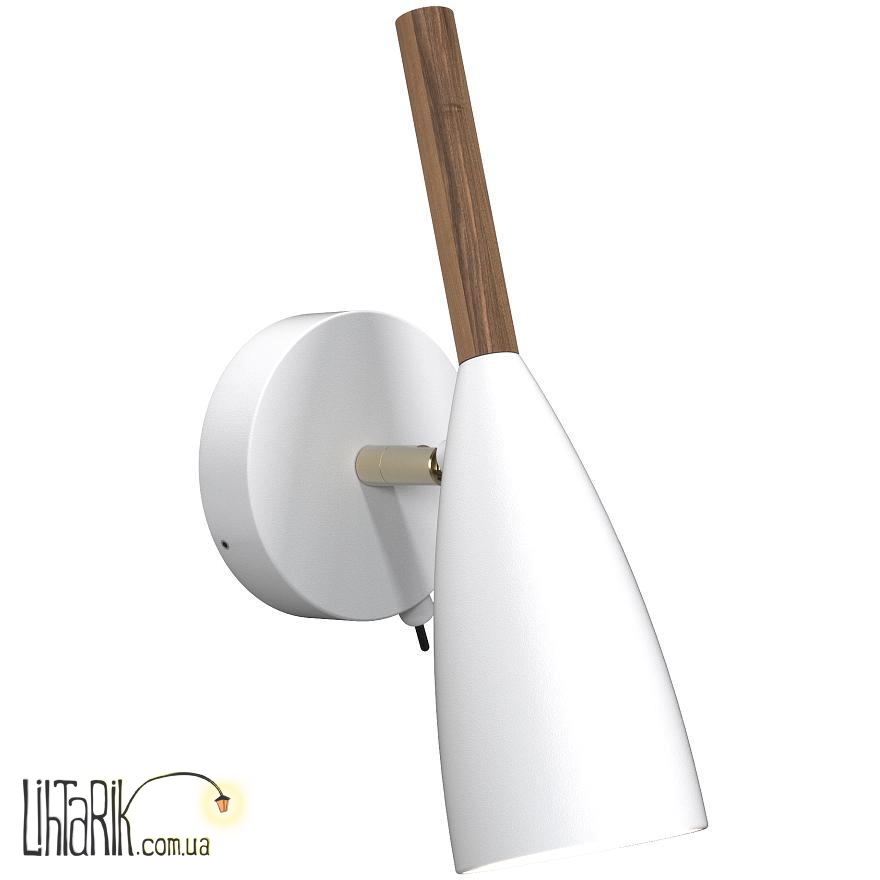 Светильник на стену, Направленный светильник конусообразной формы впишется в любую дизайнерскую среду. Модель представлена в белых тонах. Светильник изготовлен из металла высокого качества