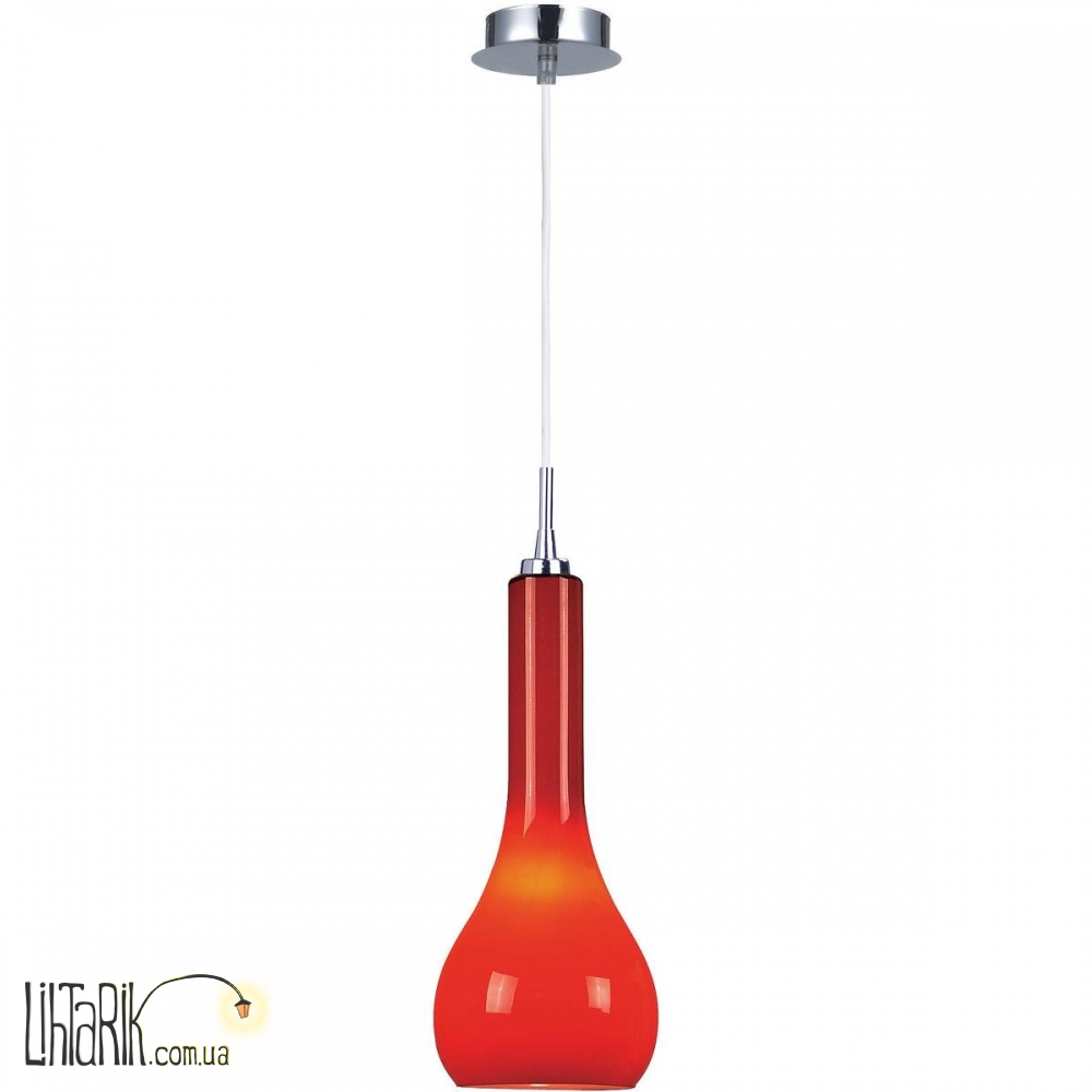 Подвесной светильник, Светильник подвесной колбовидной формы впишется в любую дизайнерскую среду. Подходит для вашей кухни. Модель представлена в красных тонах. Светильник изготовлен из стекла высокого качества