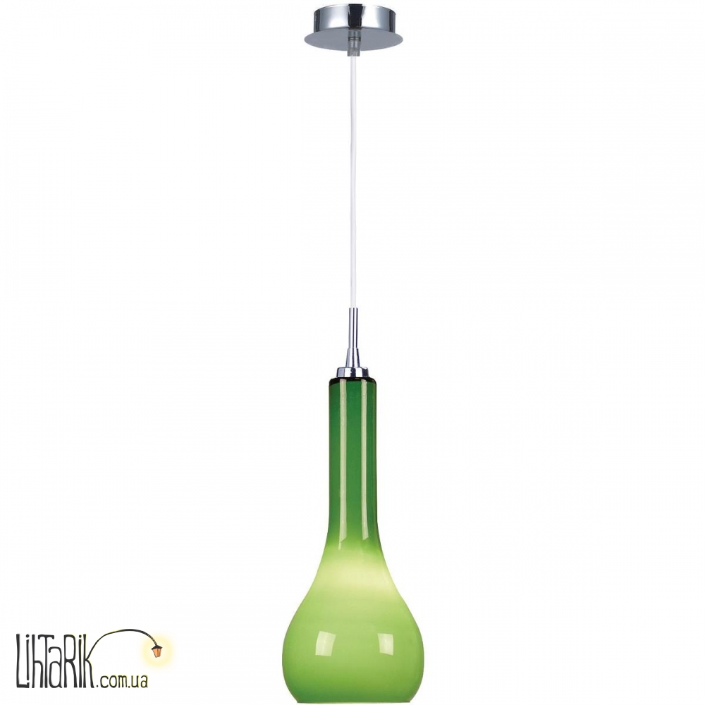 Подвесной светильник, Светильник подвесной колбовидной формы впишется в любую дизайнерскую среду. Подходит для вашей кухни. Модель представлена в зеленых тонах.