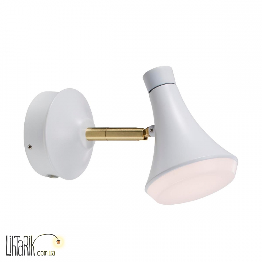 Светильник на стену, Направленный светильник конусообразной формы впишется в любую дизайнерскую среду. Модель представлена в белых тонах.