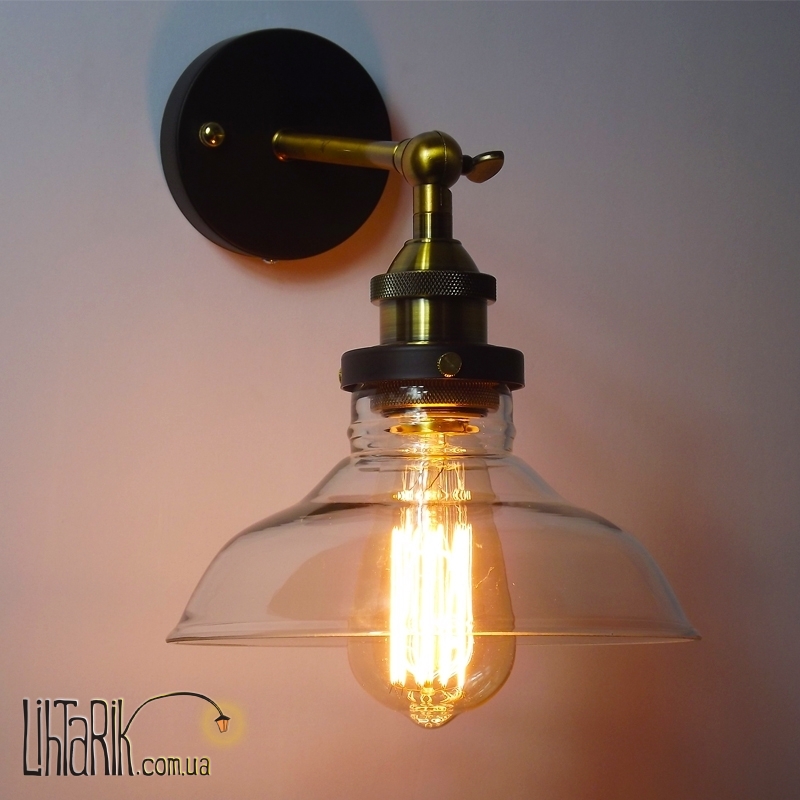 Это бра в виде зонта или же купола, как плоская тарелка впишется в любую дизайнерскую среду. Модель представлена в золотых, черных тонах. Светильник изготовлен из металла, стекла высокого качества
