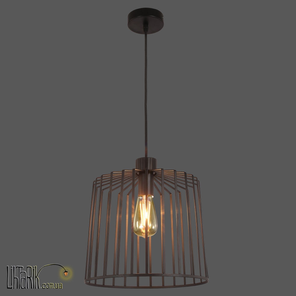Светильник подвесной бочковидного вида, с минималистским каркасным дизайном впишется в любую дизайнерскую среду.