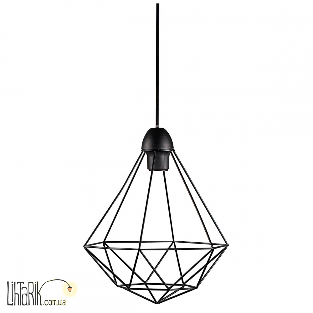 Подвесной светильник, Светильник подвесной с минималистским каркасным дизайном впишется в любую дизайнерскую среду. Подходит для вашей кухни. Модель представлена в черных тонах. Светильник изготовлен из металла высокого качества