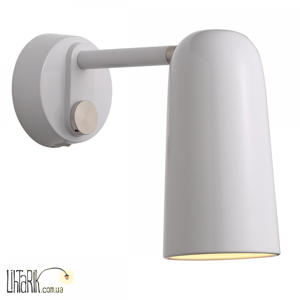 Светильник на стену, Направленный светильник конусообразной формы впишется в любую дизайнерскую среду. Модель представлена в белых тонах. Светильник изготовлен из металла высокого качества