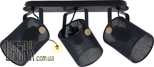 Припотолочная люстра, Направленный светильник бочковидного вида впишется в любую дизайнерскую среду. Подходит для вашей гостиной, прихожей, спальни. Модель представлена в черных тонах. Светильник изготовлен из дерева, металла, ткани высокого качества