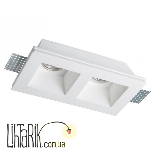 Светильник на потолок, Встраиваемый светильник с четкими ровными углами впишется в любую дизайнерскую среду. Модель представлена в белых тонах.