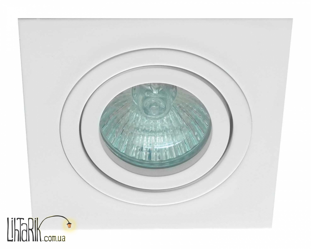 Светильник на потолок, Встраиваемый светильник с четкими ровными углами впишется в любую дизайнерскую среду. Модель представлена в белых тонах.