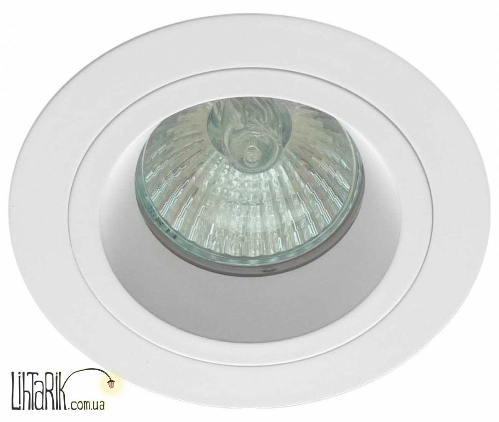 Светильник на потолок, Встраиваемый светильник круглого (шарообразного) вида впишется в любую дизайнерскую среду. Модель представлена в белых тонах.