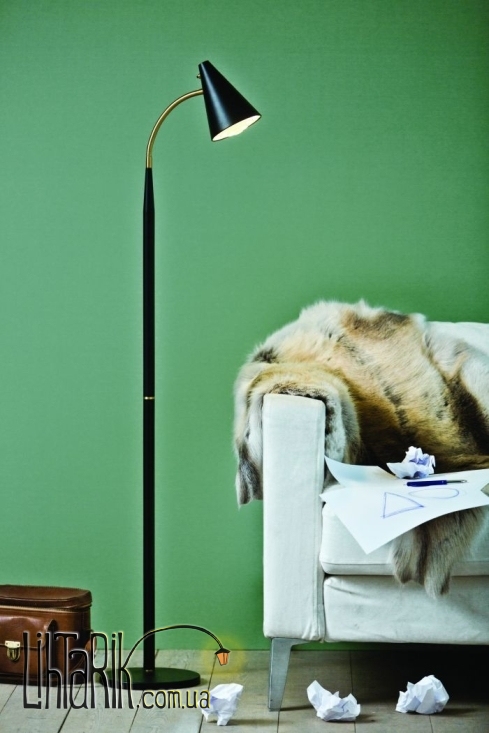 Оригинальный торшер конусообразной формы впишется в любую дизайнерскую среду. Модель представлена в черных тонах. Светильник изготовлен из металла высокого качества