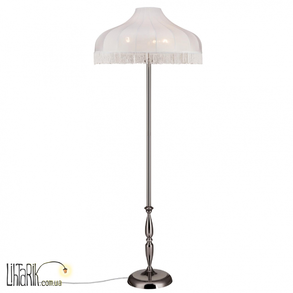 Оригинальный торшер с оригинальным абажуром впишется в любую дизайнерскую среду. Модель представлена в белых тонах. Светильник изготовлен из металла, ткани высокого качества