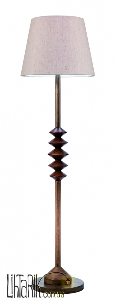 Оригинальный торшер с оригинальным абажуром впишется в любую дизайнерскую среду. Модель представлена в древесных тонах.