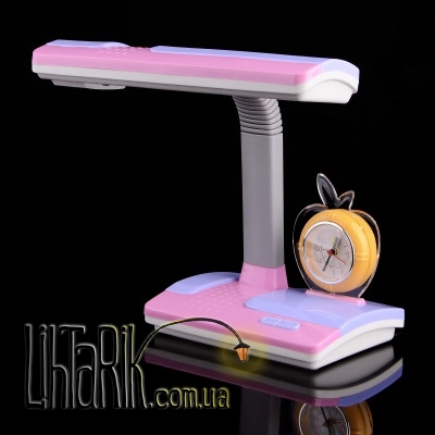 Для комфортной работы за столом необходимо обеспечить рабочему месту хорошее освещение. И речь сейчас идет не о вашем рабочем месте в офисе, мы имеем в виду рабочее место вашего ребенка, ведь неважно, ходит ли он в школу или только собирается, свой письменный стол у него уже есть. Так почему бы вам не приобрести настольную лампу для детской TP-013 PN? Ее яркий, не слепящий глаза свет будет благоприятно влиять на продуктивность работы вашего малыша, а ее стильный яркий внешний вид подчеркнет дизайн интерьера детской. Настольная лампа изготовлена из пластика, ее конструкция состоит из прямоугольного основания, ножки и плафона продолговатой формы. Ножка гнется, что позволяет вашему ребенку без особых усилий регулировать угол наклона плафона, а, соответственно, и площадь освещения. Настольная лампа украшена часами, помещенными в прозрачное пластиковое яблоко. Именно часы в яблоке являются изюминкой осветительного прибора, благодаря которой настольная лампа так влечет и радует взор. Благодаря часам, ваш ребенок сможет самостоятельно контролировать свой распорядок дня, будет знать, когда нужно садиться за уроки, а когда пришло время для отдыха и игр. Для работы настольной лампы необходимо использовать всего одну люминесцентную лампу с цоколем G23 мощностью 11 Вт. Лампа рассчитана для работы в сети переменного тока с номинальным напряжением 220 В, выключатель находится на основании.
