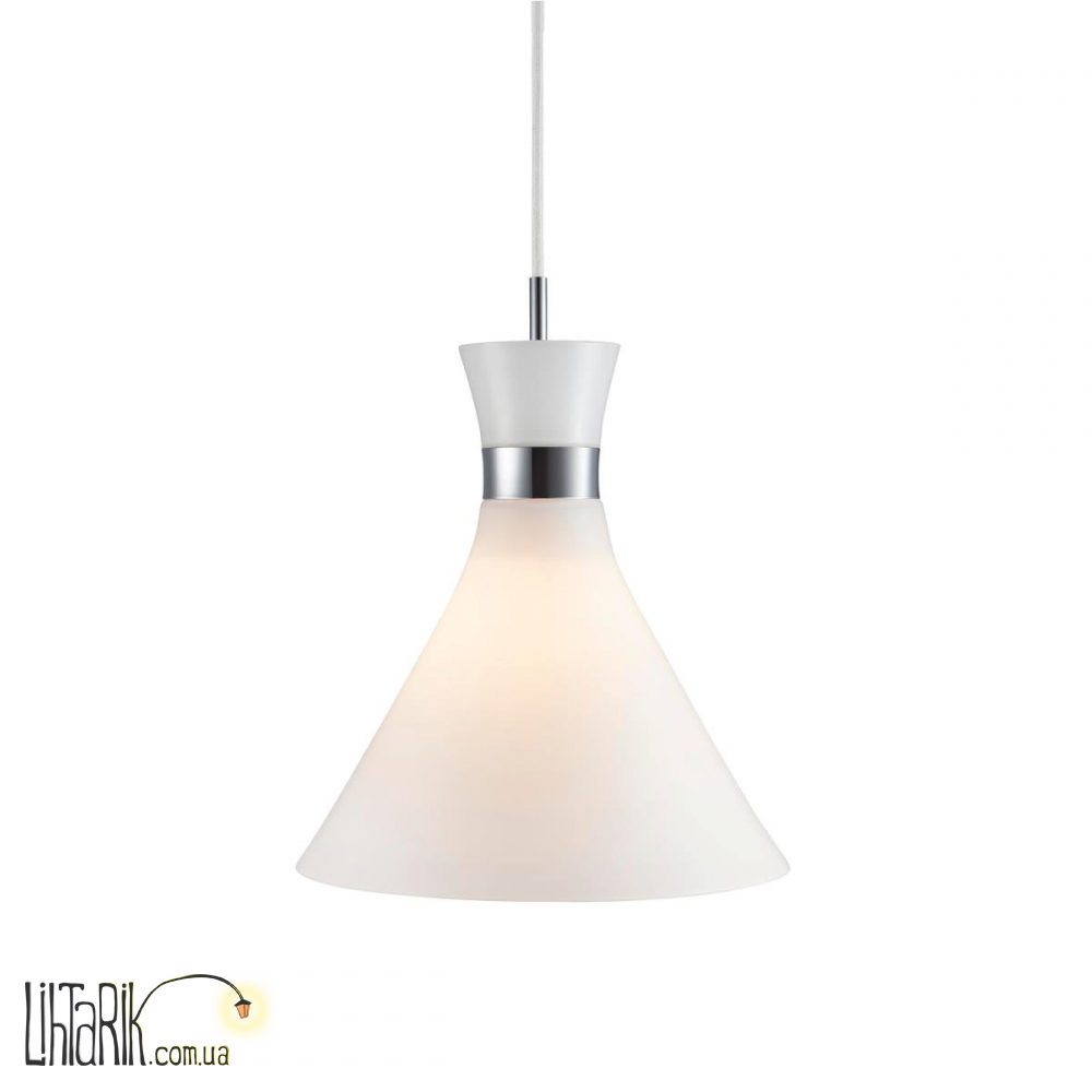 Подвесной светильник, Светильник подвесной конусообразной формы впишется в любую дизайнерскую среду. Подходит для вашей кухни. Модель представлена в белых тонах. Светильник изготовлен из стекла высокого качества