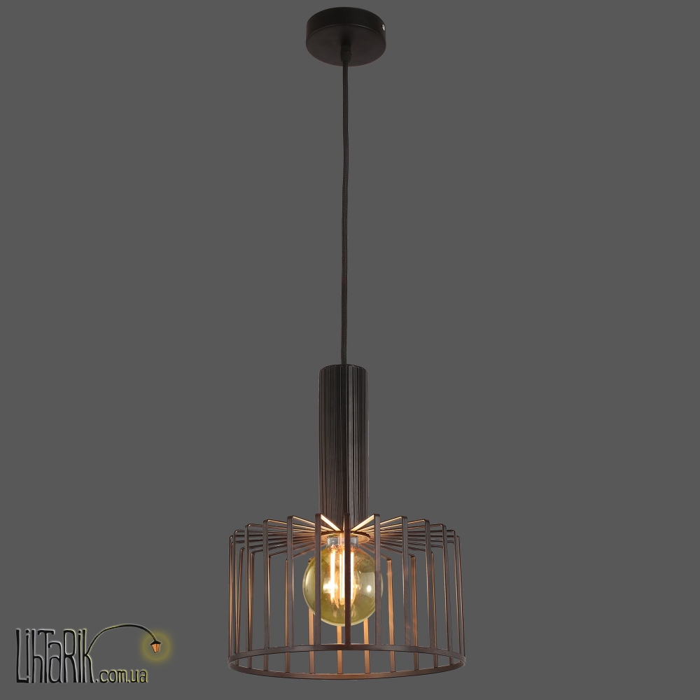 Светильник подвесной бочковидного вида, с минималистским каркасным дизайном впишется в любую дизайнерскую среду.