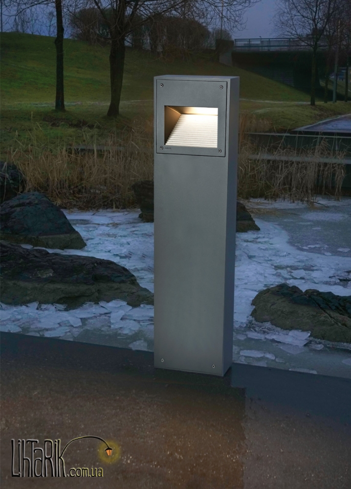 Качественный, оригинальный и прочный столб Модель представлена в серых тонах. Светильник изготовлен из металла высокого качества