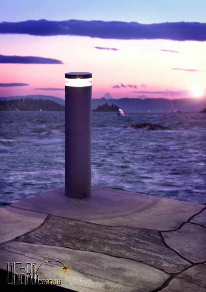Качественный, оригинальный и прочный столб бочковидного вида, как фонарь или лампада впишется в любую дизайнерскую среду. Модель представлена в прозрачных, серых тонах. Светильник изготовлен из металла высокого качества