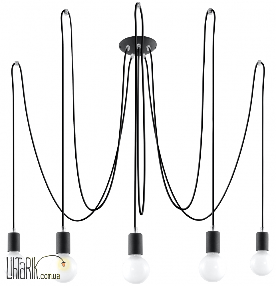 Патрон: E27, 5 x max. 60W, 50 Hz, 220V, IP20. Лампы не в комплекте. Размеры: max. 600 x max. 300 cm Материал: текстиль Цвет: чёрный