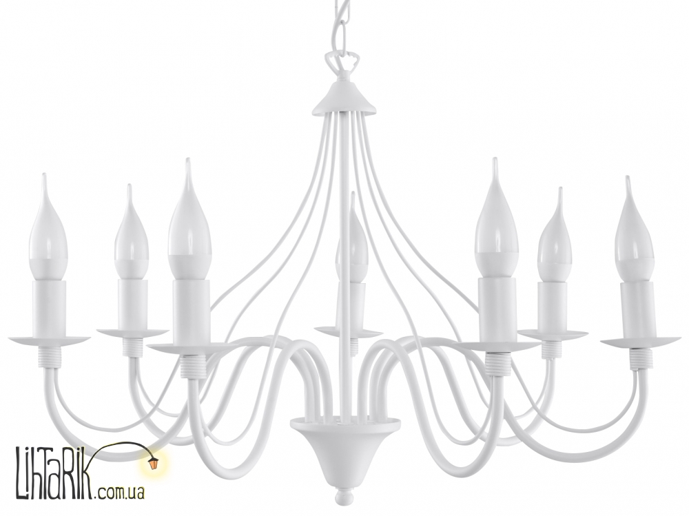 Патрон: E14, 7 x max. 40W, 50 Hz, 220V, IP20. Лампы не в комплекте. Размеры: 60 x 60 x max. 80 cm Материал: Metal Цвет: белый