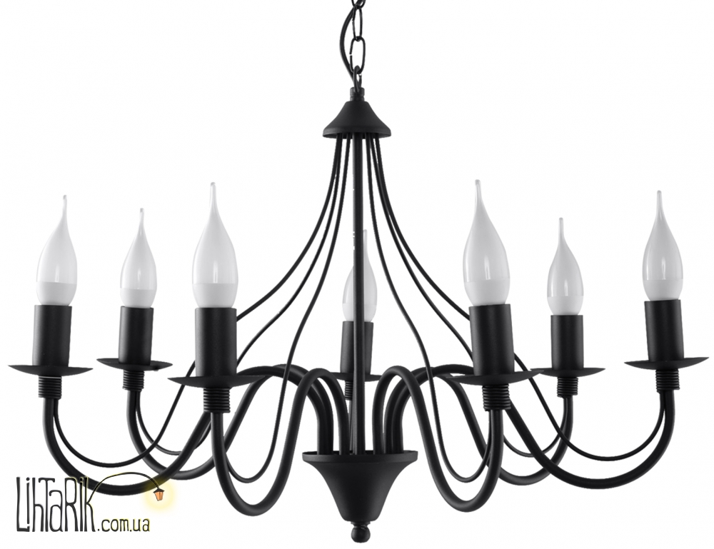 Патрон: E14, 7 x max. 40W, 50 Hz, 220V, IP20. Лампы не в комплекте. Размеры: 60 x 60 x max. 80 cm Материал: Metal Цвет: чёрный
